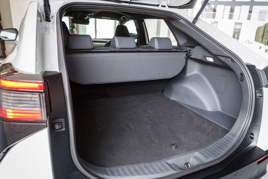 ▲ Volumen im Fond: 452 Liter können im Kofferraum des bZ4X zugeladen werden – bei umgeklappter Rückbank entsprechend mehr.